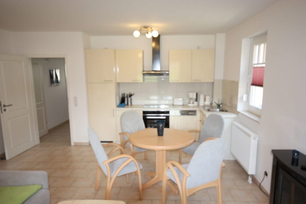 Diese Wohnung wurde 2010 gebaut und ab Frühjahr 2011 vermietet. Die Einrichtung ist sehr hochwertig in bordeaux-vanille gehalten. Die Fewo lieg im 1. Obergeschoß und verfügt über einen Südbalkon mit Sonnenliege. Die Wohnung besitzt zwei Schlafzimmer, eines mit Doppelbett und eines mit zwei Einzelbetten, die bei Bedarf zusammengestellt werden können. 80cm Flatsreen-TV, DVD, CD, Elektrokamin sorgen im Wohnzimmer auch an kalten Tagen für Gemütlichkeit. Die Küche ist vollständig ausgestattet und verfügt neben einer Spülmaschine auch über einen Backofen.